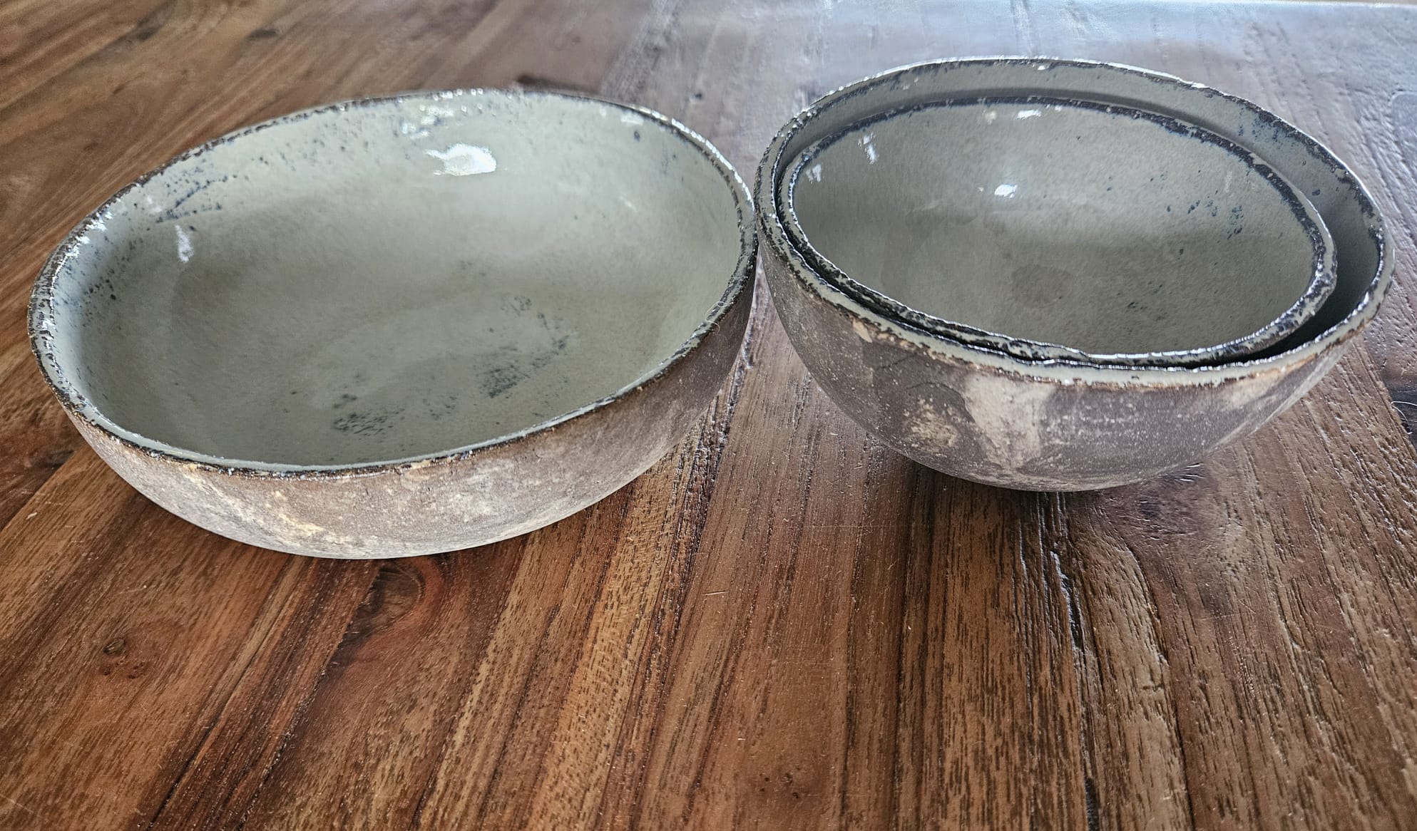 De schalen gaan nu drogen en worden daarna 2x gebakken.